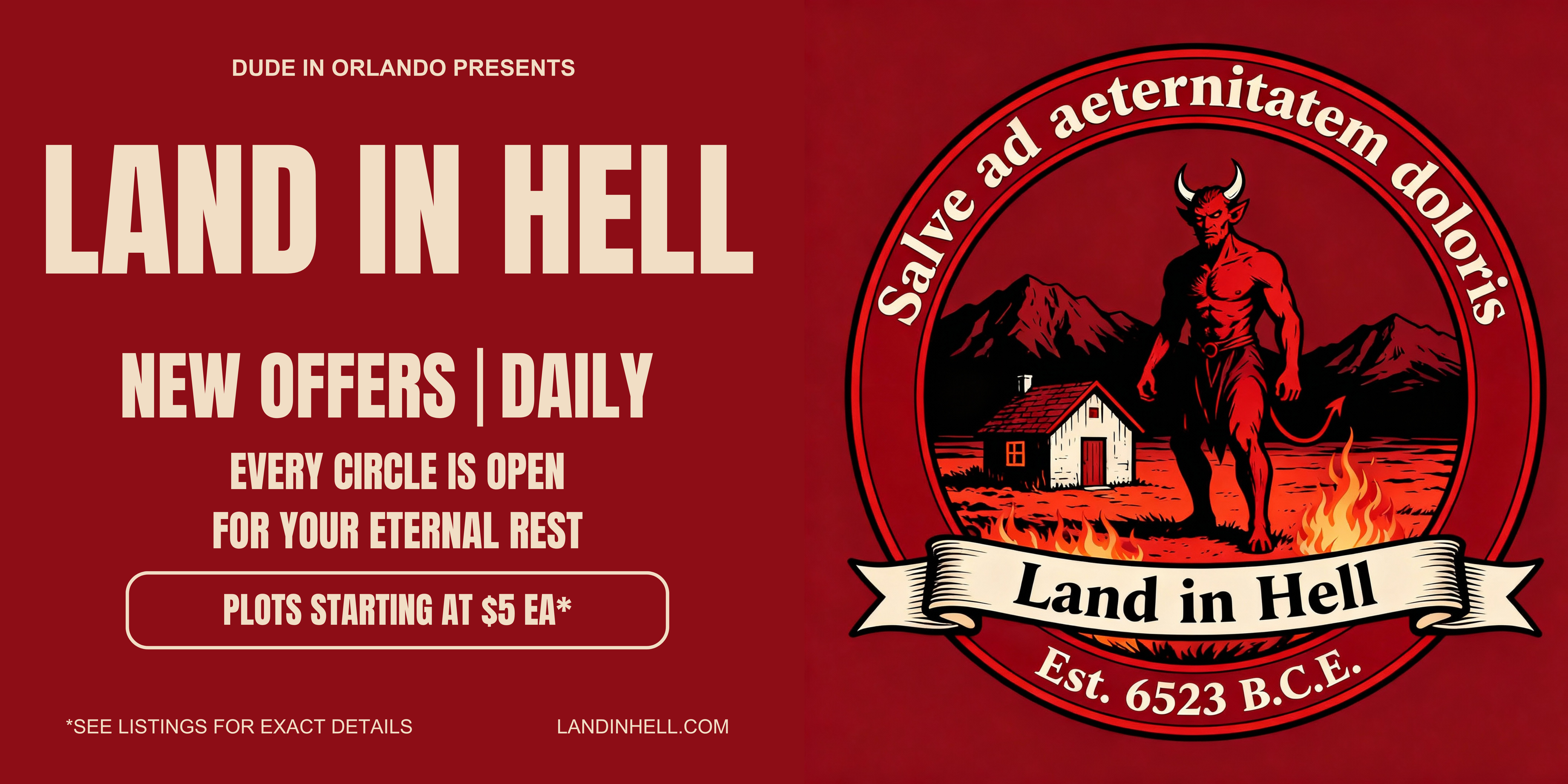 Land in Hell is the Afterlife's finest boutique real estate agency, ranked #1 among the underworld's brokerage firms. Specializing in luxury property from Limbo to Treachery and beyond.